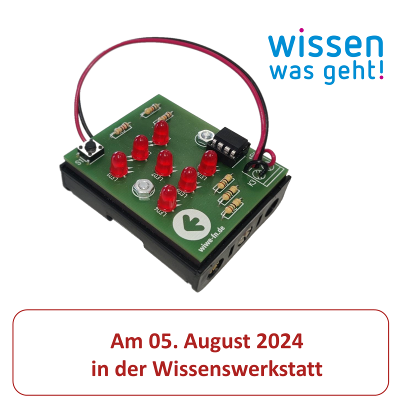 Auch die Wissenswerkstatt ist dieses Jahr wieder mit einem Kurs dabei. Am 5. August 2025 könnt ihr von 9:00 bis 11:30 Uhr einen elektronischen Würfel löten.